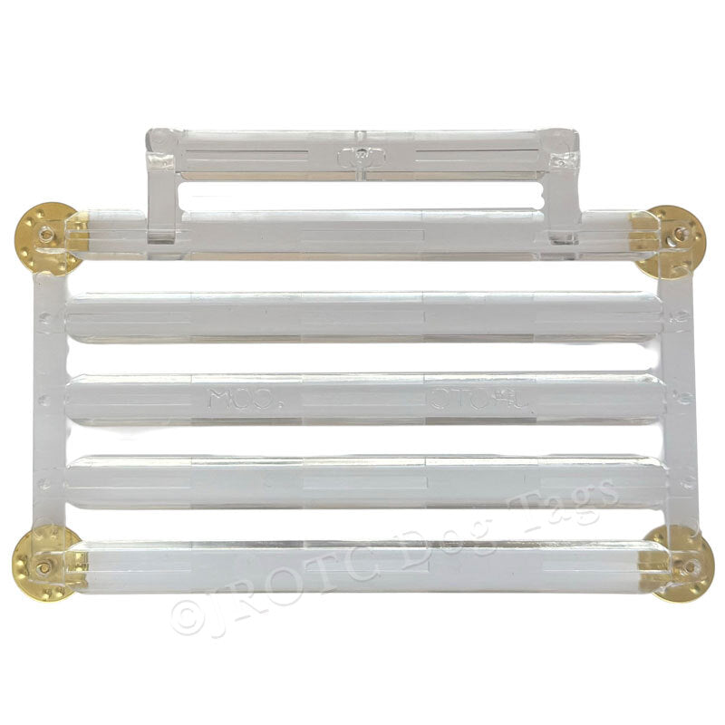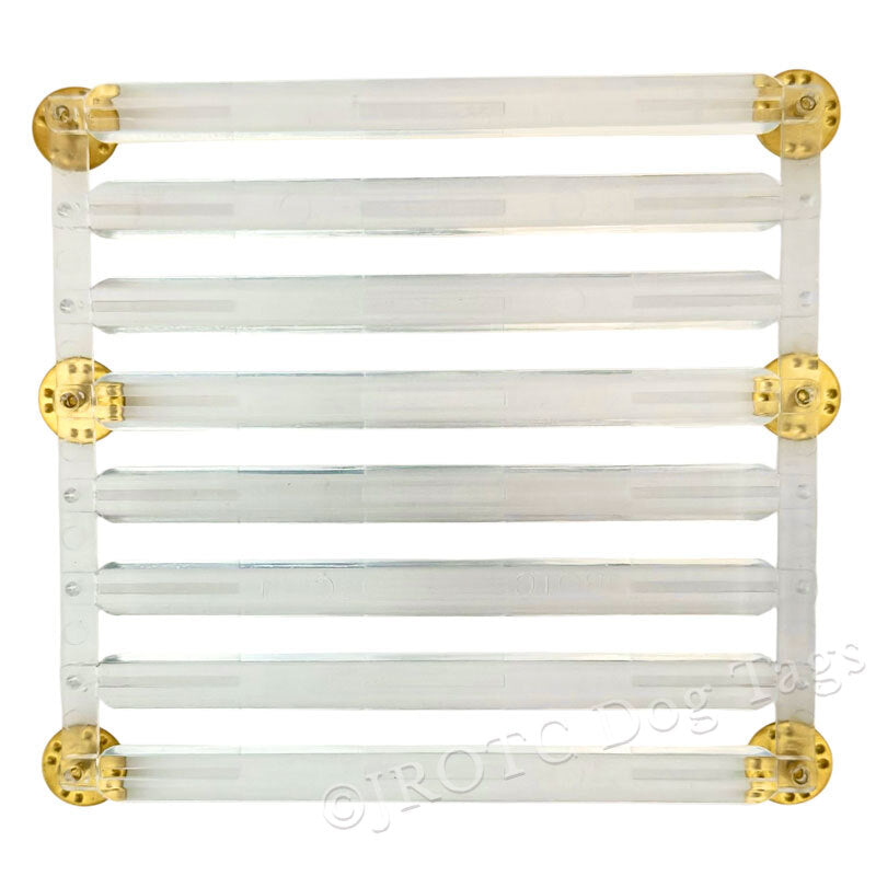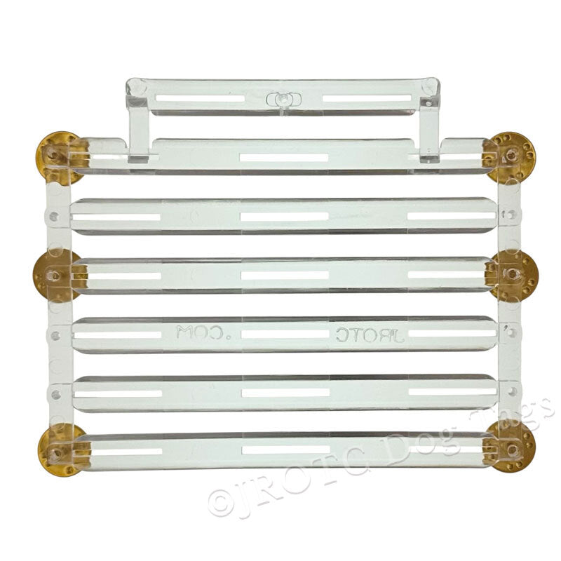 Plastic Ribbon Mounts, select the rack that fits your needs to hold your service awards. Slide your Ribbons onto the plastic ribbon bar. Pins do not Break. Very Safe, Flexible, and Re-usable.