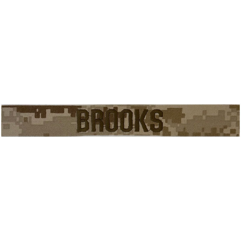 Custom name embroidered name tapes for Marines on a Desert MCCU pattern tape