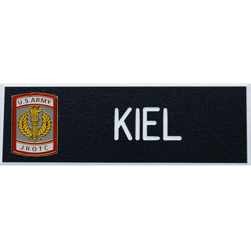 Army JROTC cadet military spec uniform nameplates for class a/b & ASU uniforms. JROTC, Junior ROTC nameplate, JROTC, Junior ROTC, name badge, nametag, name tag, AJROTC, Junior ROTC Army crest name JROTC, Junior ROTC
